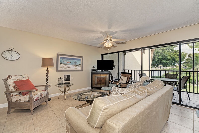 Step onto your private screened lanai overlooking the beautiful Intracoastal Waterway, where you can relax with morning coffee or enjoy outdoor dining. The heated swimming pool and large sun deck are just minutes away, providing a perfect spot for sunbathing and relaxation. Enjoy the BBQ area for family cookouts, and take advantage of tennis courts and a basketball court for added fun.