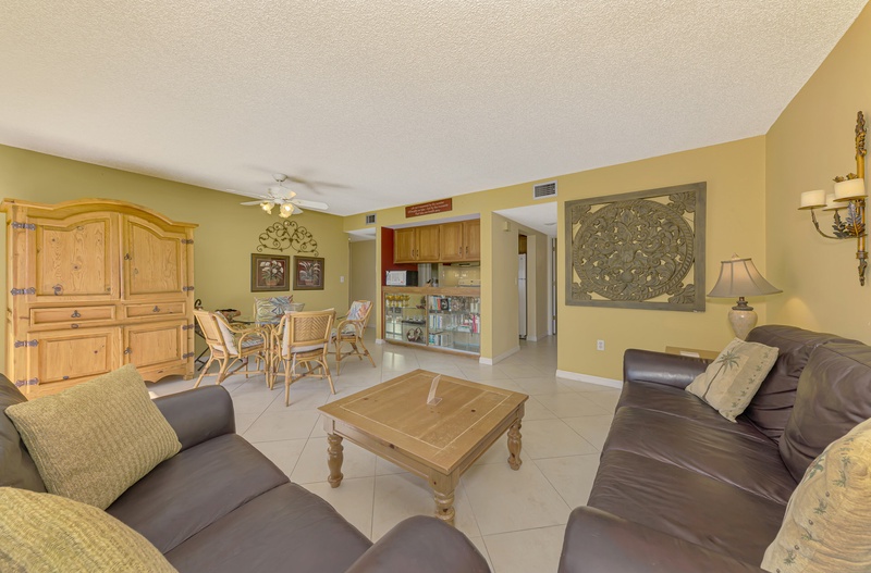 This stunning third-floor unit offers picturesque views of the swimming pool and lagoon area, providing a serene backdrop for your stay. With a spacious layout, the condo features a primary bedroom with a luxurious king bed and a guest bedroom with twin beds—perfect for families or friends lounging together.