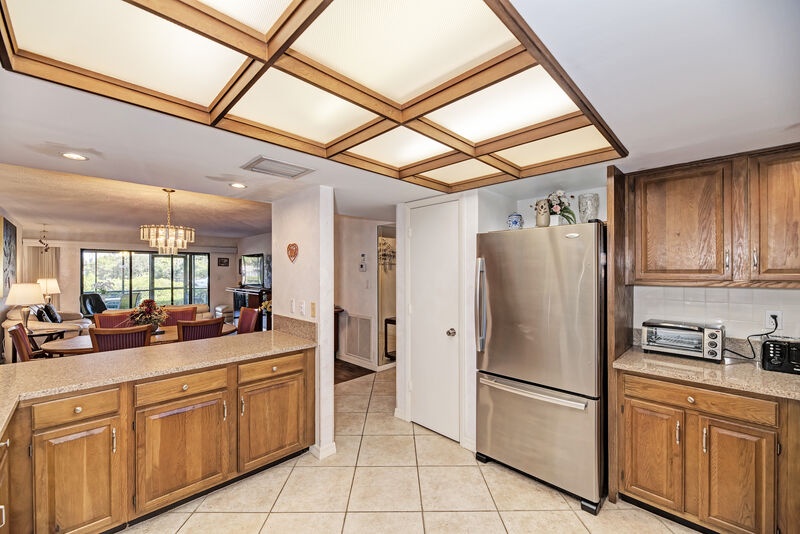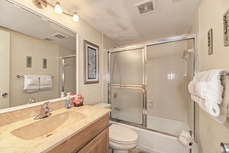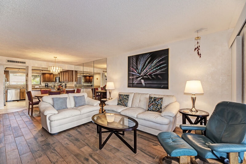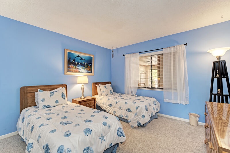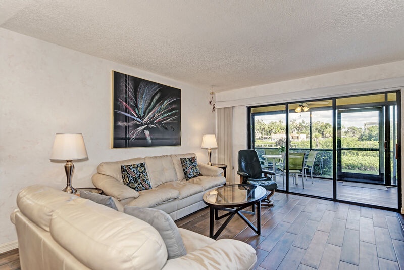 This tastefully appointed first-floor unit features 2 bedrooms and 2 bathrooms, complete with a washer and dryer for your convenience. Step out onto your lanai to take in the beautiful views of the Intracoastal Waterway, where you’ll feel the tranquility surrounding you. The primary bedroom offers a comfortable queen bed, while the guest bedroom features two twin beds, perfect for family or friends. The inviting living room is equipped with a queen sleeper sofa, accommodating extra guests effortlessly.