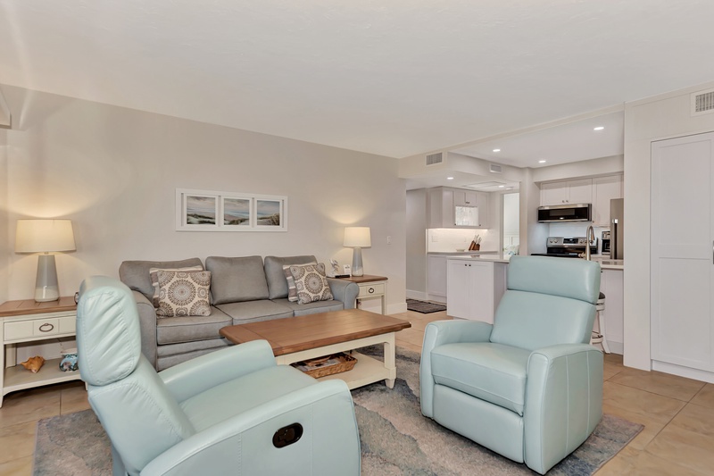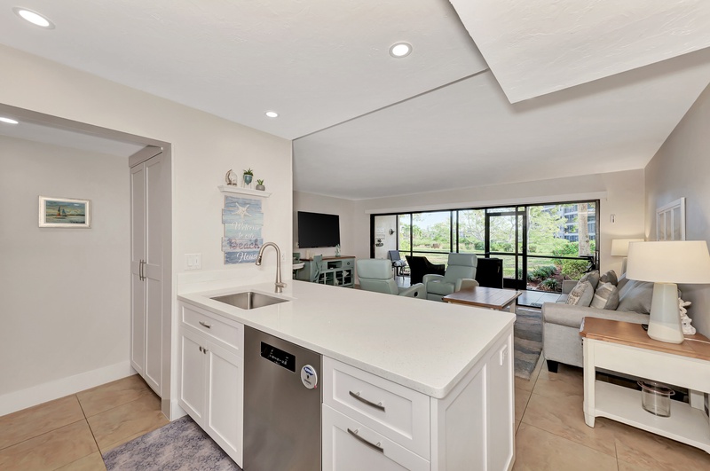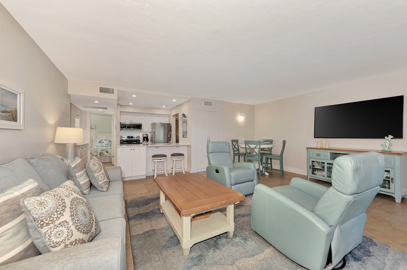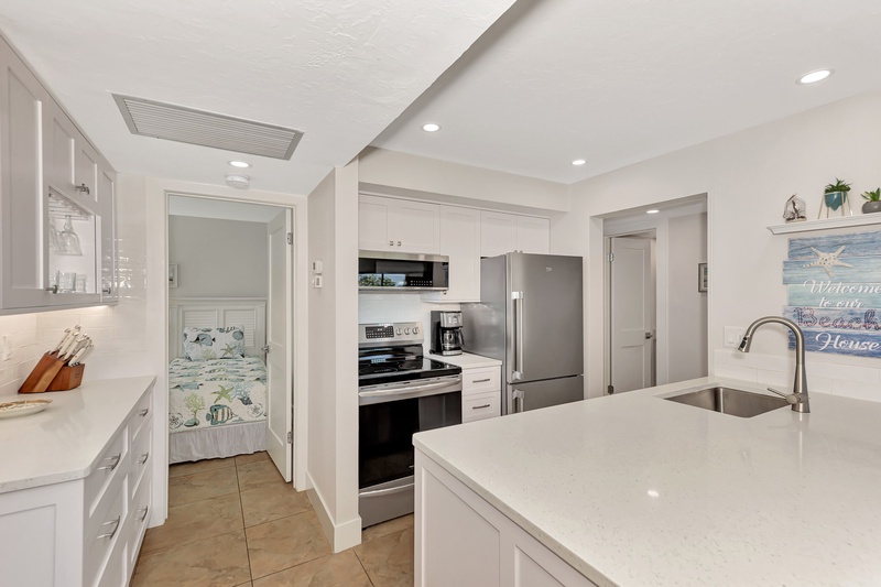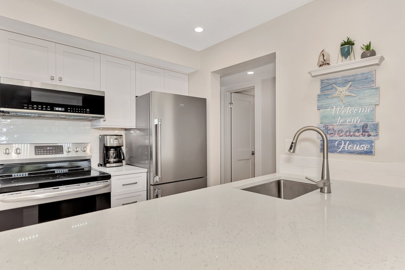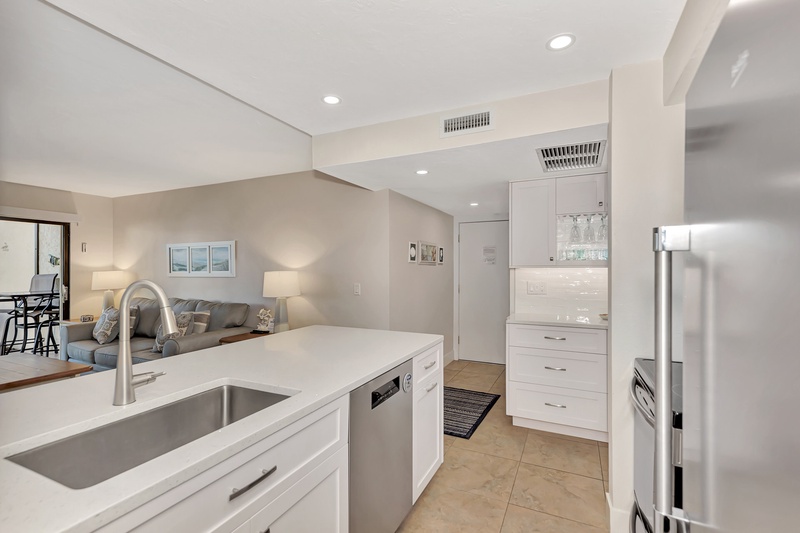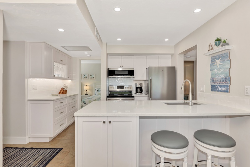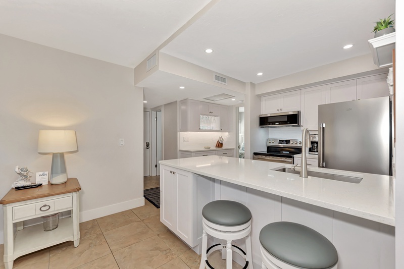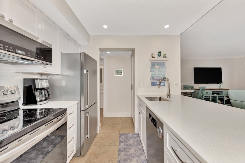 Unit 313 is a tastefully newly remodeled 2 bedroom, 1.5 bathroom highly sought after ground floor condo featuring a beautiful kitchen with all new stainless steel appliances. The living room offers a pull out sofa bed for extra space and sleeping arrangements up to 6.