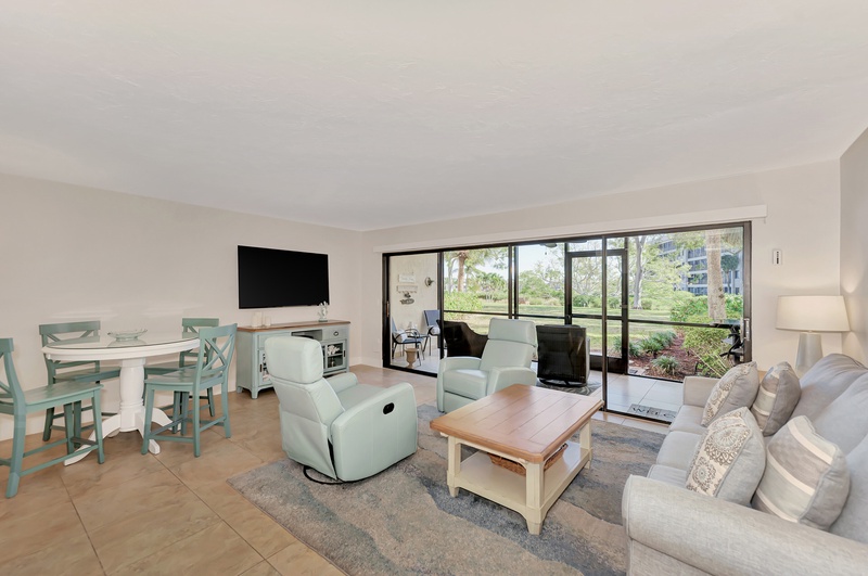 Relax in the spacious lanai, where you can see the sunrise and watch for dolphins as the boats sail by on the Intracoastal Waterway. Enjoy the sounds of the many waterbirds such as eagles, pelicans, and the beautiful songbirds as they soar above the lush tropical landscape. You’ll never want to leave this beautiful place!